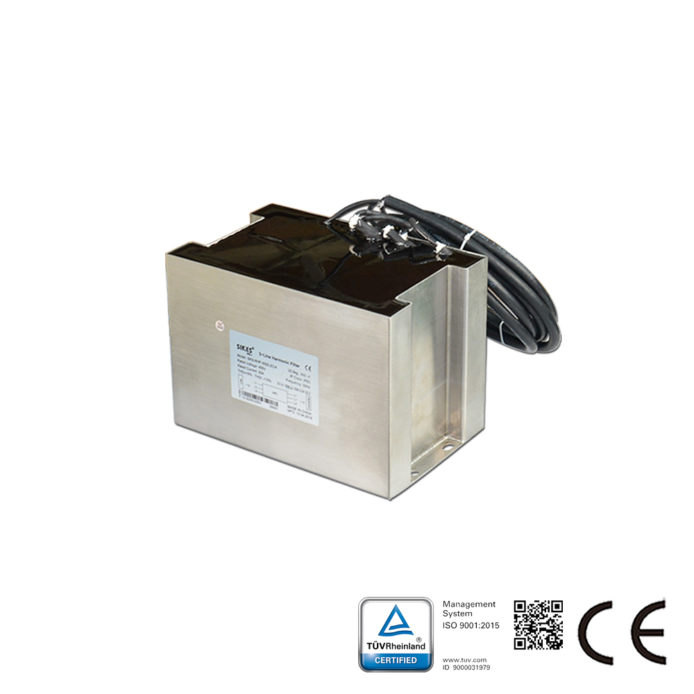 Description of  Harmonic Filter: Sikes passive harmonic filter is designed for almost any kind of electronic applications with six pulse front end rectifiers . The filter can efficiently reduce the harmonic current distortion to required level. Typical application:non-linear three-phase power supplies where potential risk is high due to thermal and electrical overload caused by harmonic currents. (THDi<5% on request)