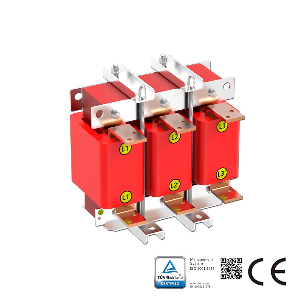 InícioProdutoAC/DC ReactorsAC Output ReactorReator de Carga CA Trifásico 400V, 1%(uK), Corrente Nominal 800A, 380kW
